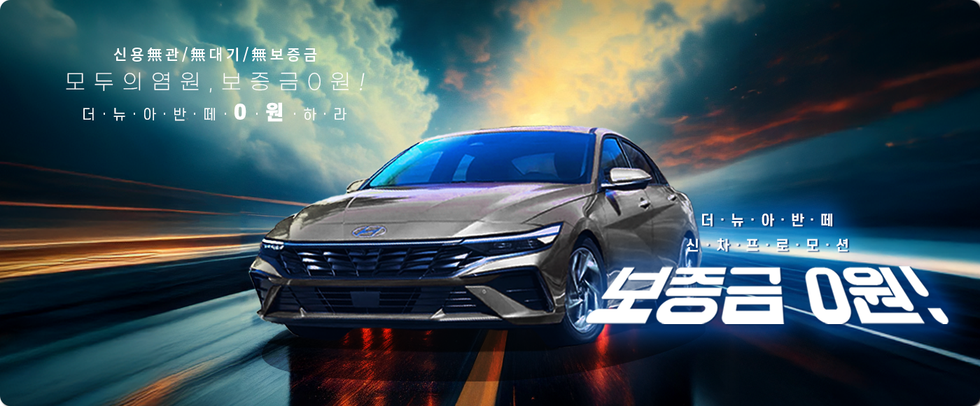 신차 아반떼, 6개월 12개월 렌트 보증금 0원!