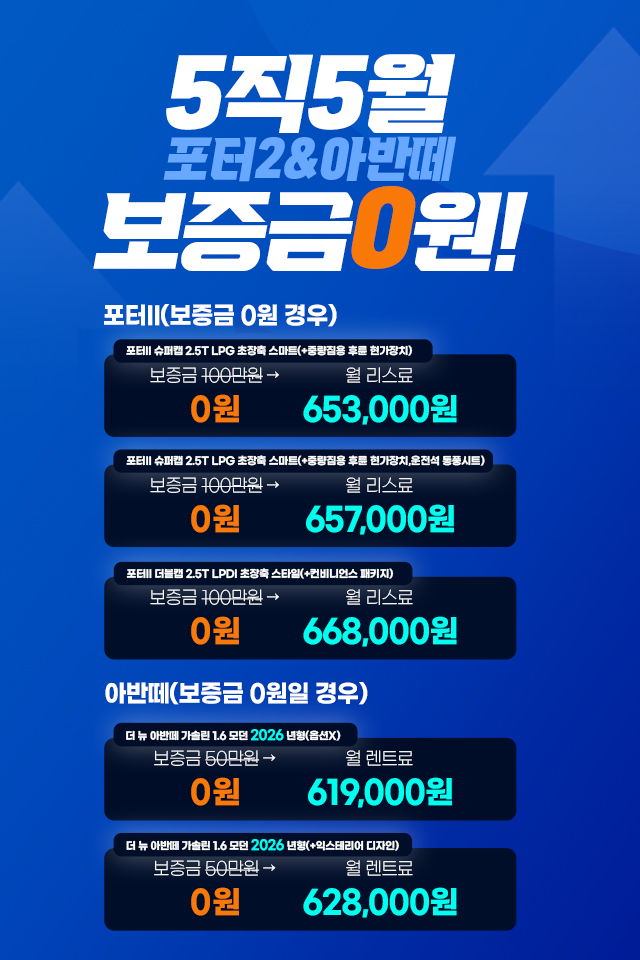 4월 한정, 신차 4종 보증금 특가 세일!
